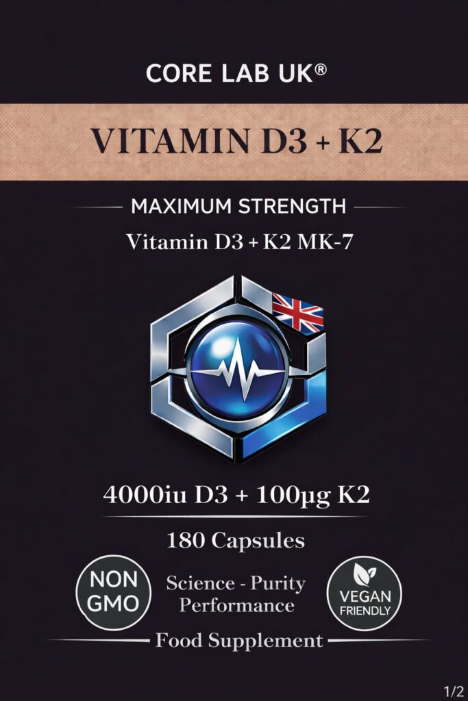 Vitamin D3 and Vitamin K2 work together to support strong bones, healthy teeth, and normal immune function. Vitamin D3 helps the body absorb calcium effectively, while Vitamin K2 helps guide calcium to the bones where it is needed most.